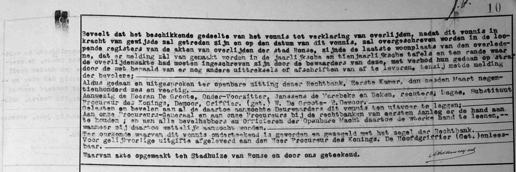 Overschrijving van gerechtelijke verklaring van overlijden in de