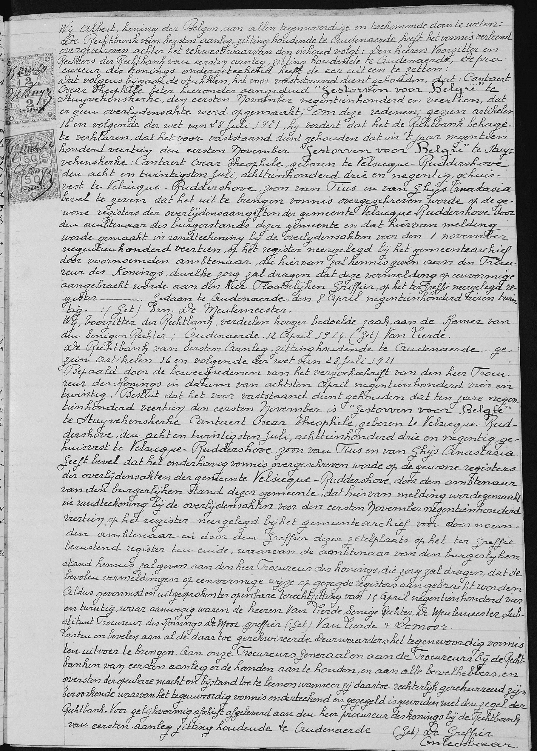 Vonnis houdende verklaring van overlijden (Bron [358]) (Het