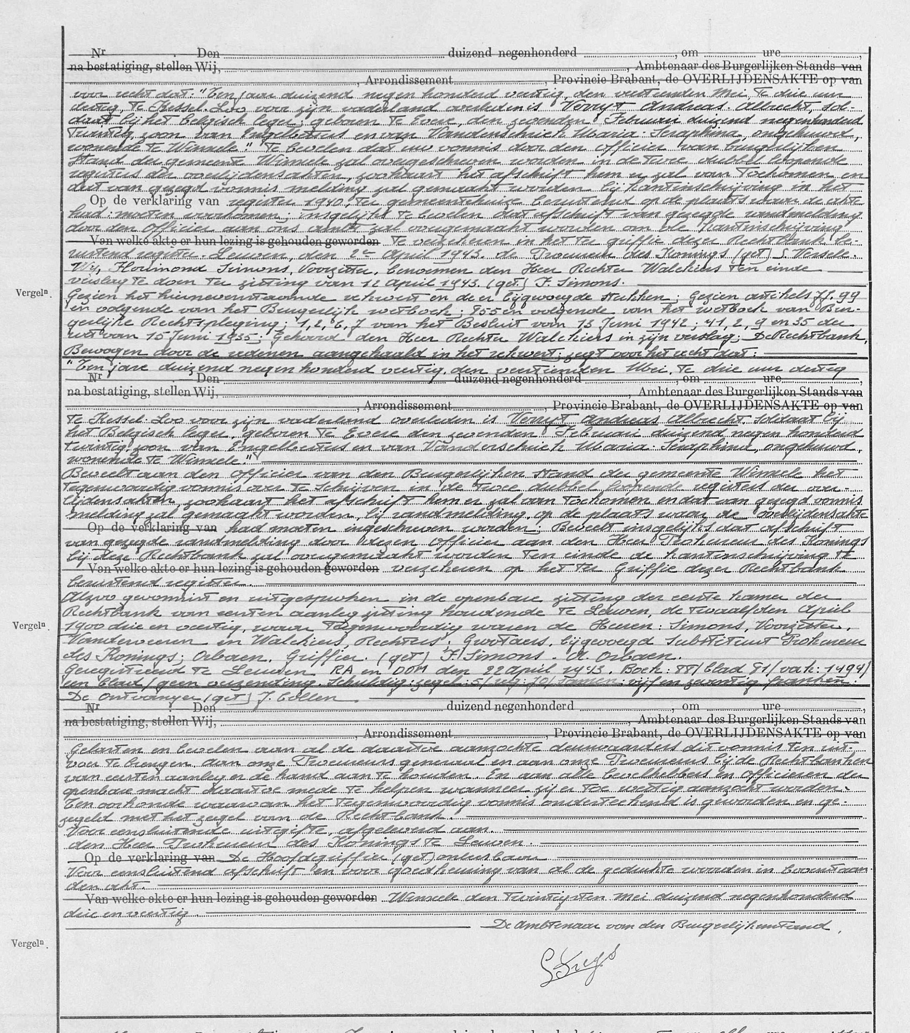 Vonnis houdende verklaring van overlijden (Bron [358]) (De