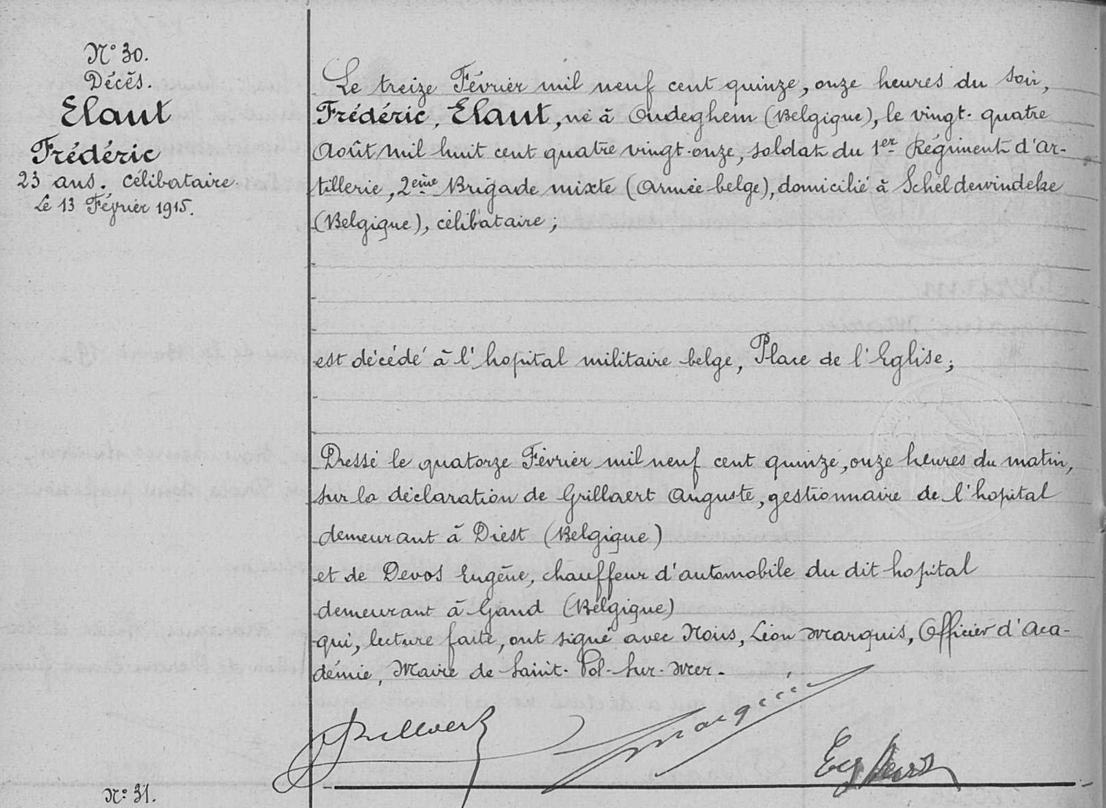 Overlijdensakte (Bron: Archives départementales du Nord, FR) (Het
