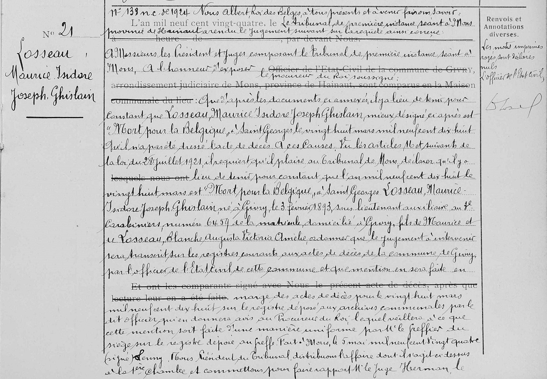 l'état civil de Givry, HT, BE