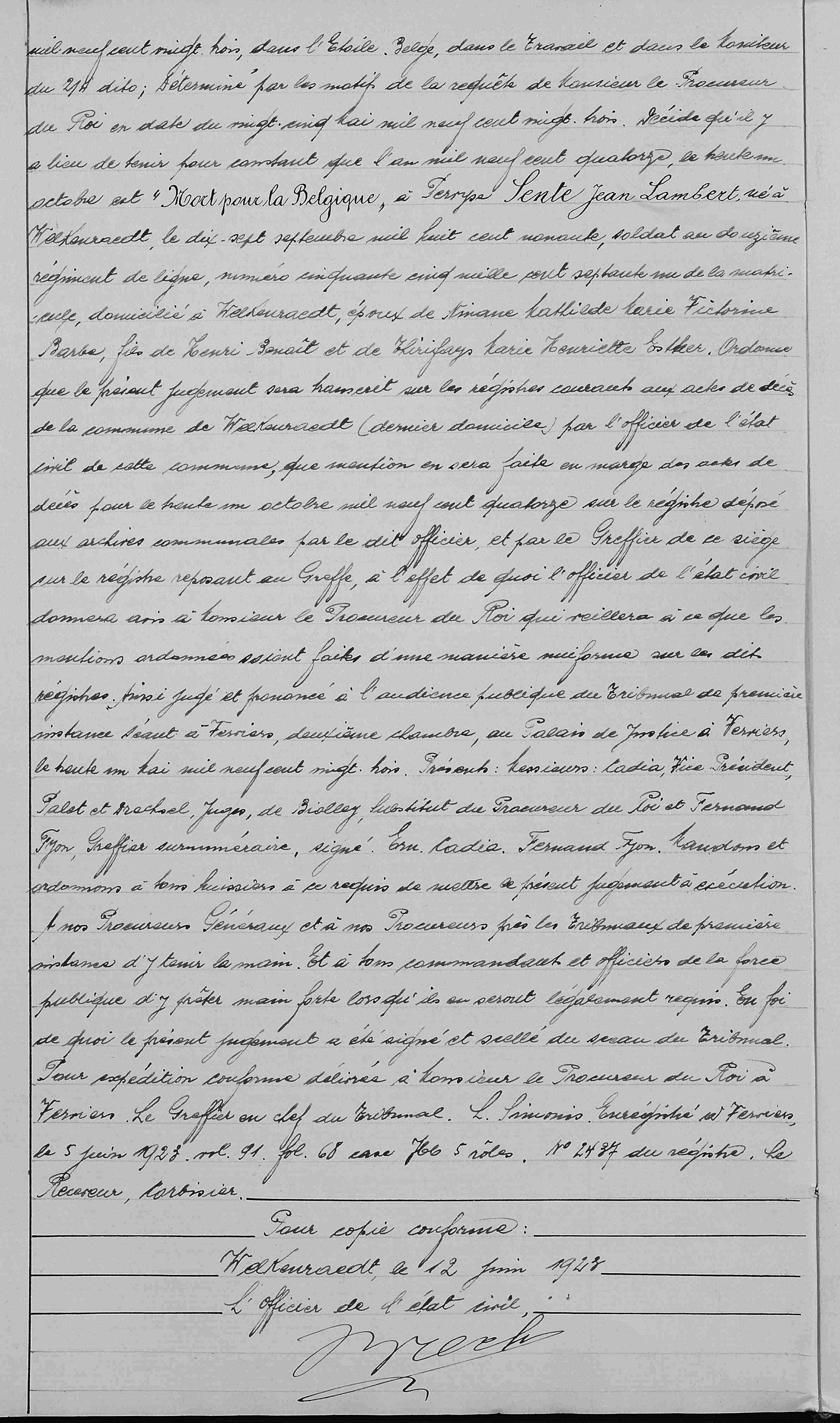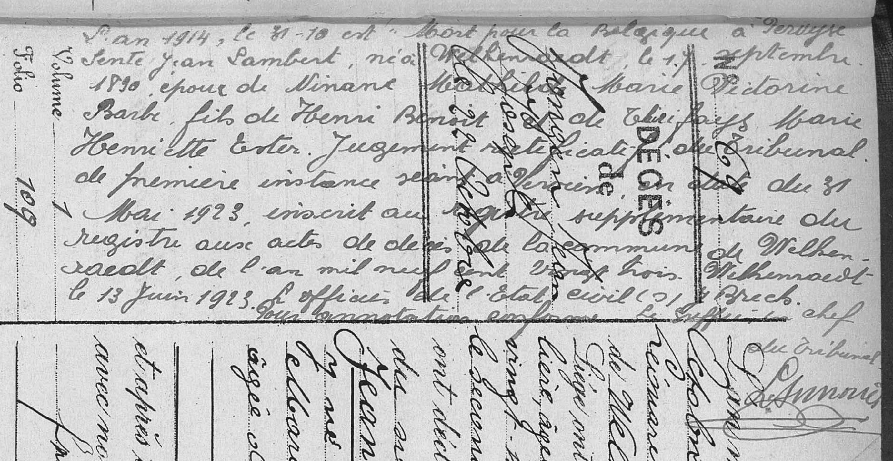 Jugement déclaratif de décès (incomplet, il manque le début du