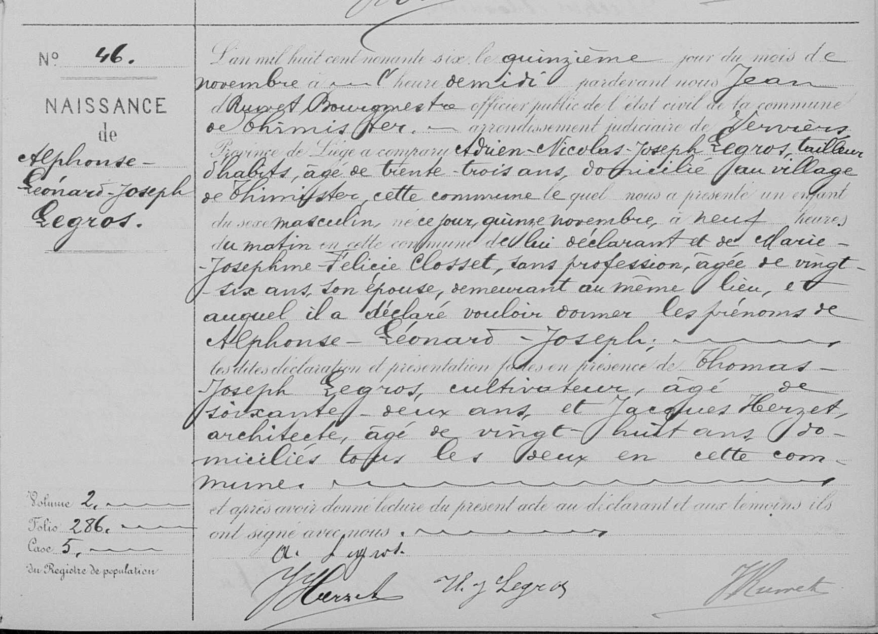 Acte de naissance (Source [358]) (Télécharger l'image pour la